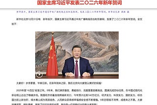 President Xi Jinping's 2026 New Year message