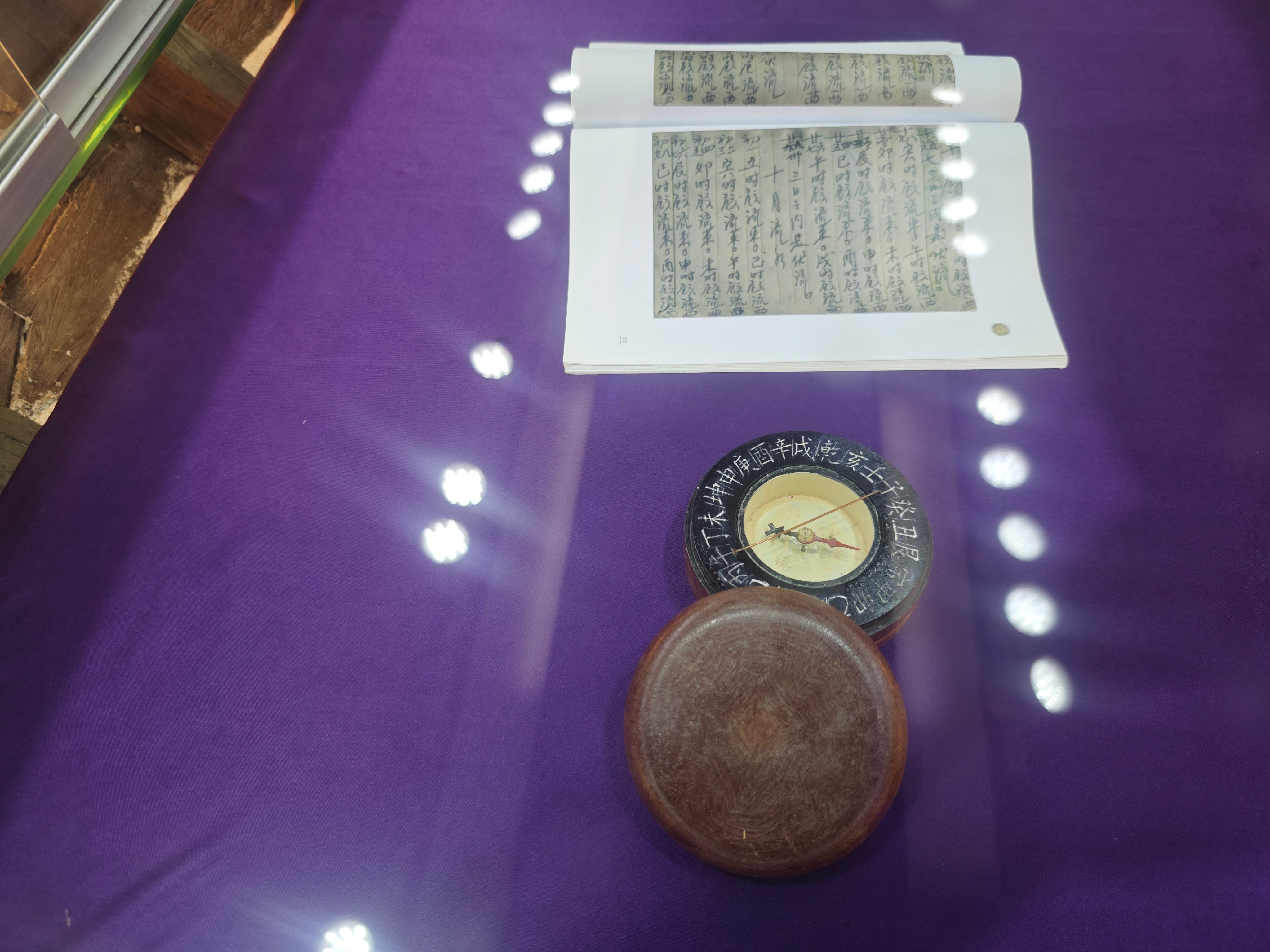 An ancient Chinese compass and a photocopy of Geng Lu Be manuals