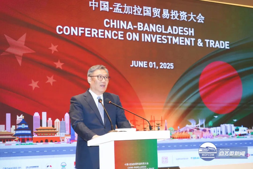In today's piece, I’d like to take a closer look at China’s growing economic engagement with South Asia. On the eve of and during the Dragon Boat Festival holiday, China's Commerce Minister Wang Wentao paid back-to-back visits to Sri Lanka and Bangladesh—two of China’s key Belt and Road partners in the region. A WeChat blog of the Ministry of Commerce, “MOFCOM WeChat News” (商务微新闻), has been closely tracking the visit since May 29.