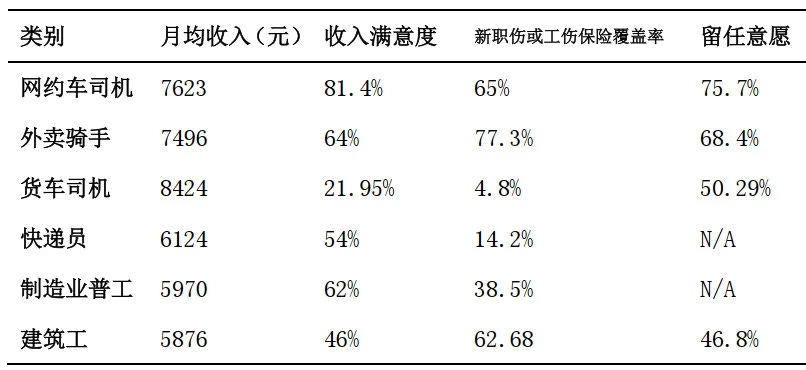 The report also compares online ride-hailing drivers with other typical blue-collar professions, including delivery workers, truck drivers, couriers, manufacturing production workers, and construction workers.