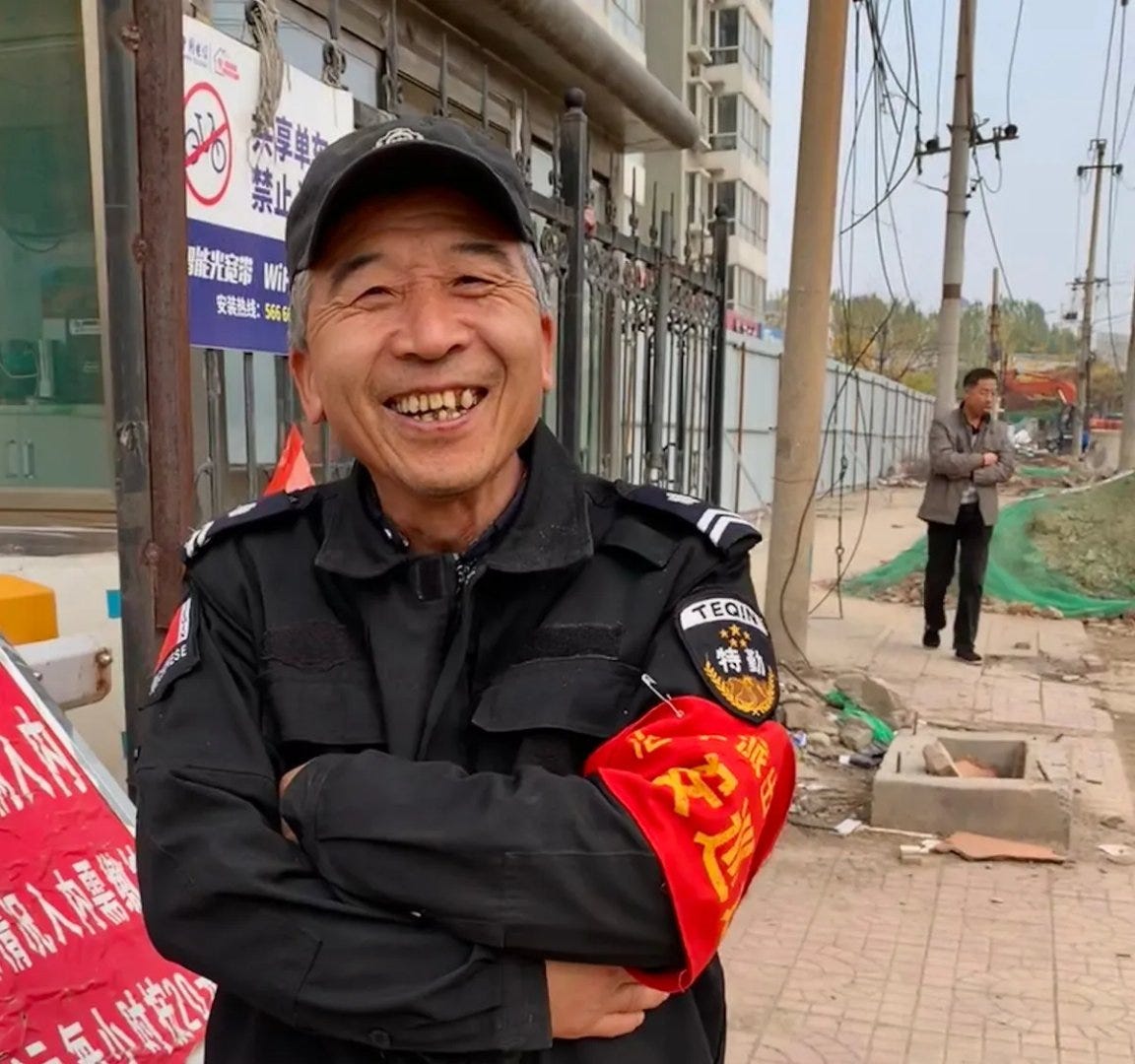 Today’s newsletter is about China’s community security guards. Guangzhou-based Southern Weekly recently interviewed Dr. He Wapi, a cultural anthropology Ph.D. from the University of Wisconsin–Madison, who conducted fieldwork between 2017 and 2018 in Shanghai’s Dadi Community—an enormous residential compound of more than 100 high-rise buildings, once home to some 60,000 residents. I found the interview fascinating and wanted to share it with you.
